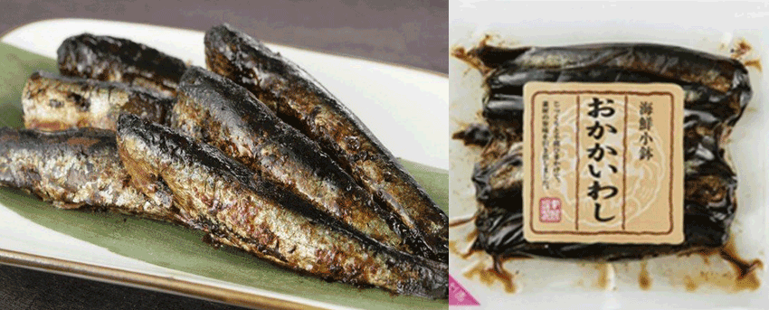 原材料:いわし(銚子沖)、砂糖、醤油(大豆・小麦を含む)、還元水飴、みりん、醸造酢、梅酢、かつお節エキス、魚醤、でん粉、酵母エキス、寒天