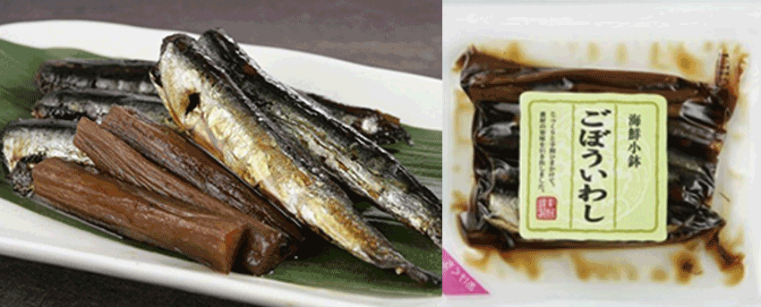 原材料:いわし(銚子沖)、ごぼう、砂糖、醤油(大豆・小麦を含む)、還元水飴、みりん、醸造酢、梅酢、かつお節エキス、魚醤