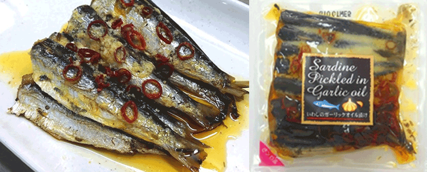 原材料:いわし(銚子沖)、オリーブオイル、おろしにんにく(にんにく、食塩、醸造酢)、食塩、清酒、唐辛子