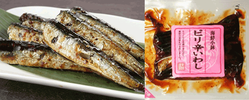 原材料:いわし(銚子沖)、砂糖、醤油(大豆・小麦を含む)、還元水飴、みりん、醸造酢、梅酢、かつお節エキス、魚醤、唐辛子、豆板醬、でん粉、酵母エキス、寒天