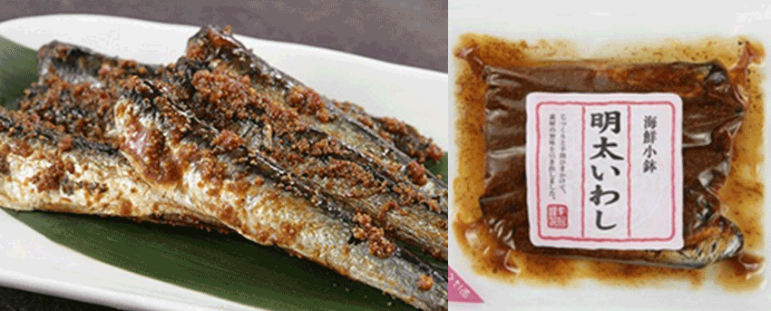 原材料:いわし(銚子沖)、砂糖、たらこ、醤油、還元水飴、キムチの素、みりん、醸造酢、梅酢、かつお節エキス、魚醤、でん粉、酵母エキス、唐辛子/調味料(アミノ酸等)、酸味料、アナトー色素、増粘多糖類、クチナシ色素、(一部に大豆・小麦を含む)