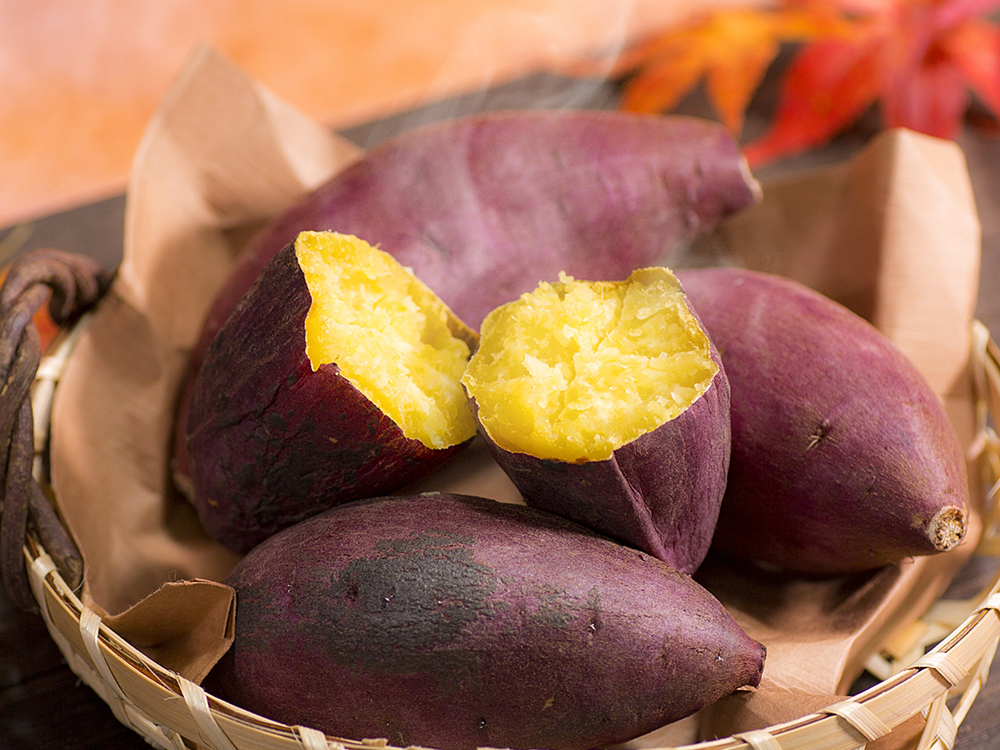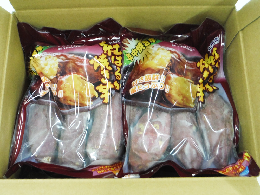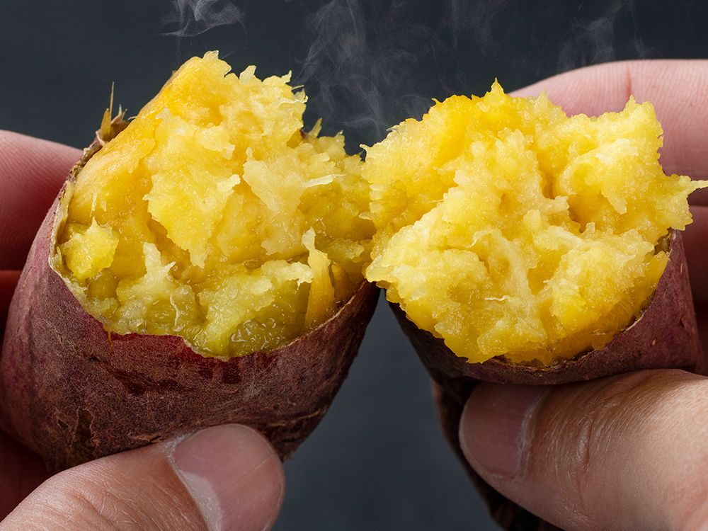 収穫後40日以上貯蔵することでぐっと甘味を増加させ、オーブンで焼き上げ急速冷凍機(プロトン凍結)で一気に冷凍、「冷凍焼き芋」が完成します。