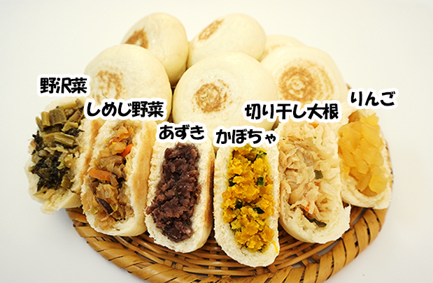 耳たぶぐらいに柔らかく練った小麦の皮に、季節の野菜、山菜を味噌や醤油で味付けして、たっぷりと包み込んだ郷土食。