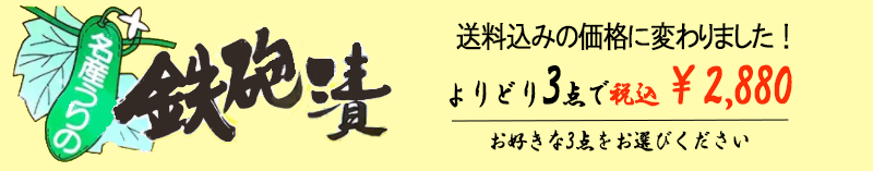 「鉄砲漬1本入り」「鉄砲漬1本入り (うす口)」の2種の中から3品お選びください。