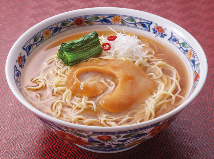 塩味ベースのスープは、イワシ煮干しや宗田ガツオなどの魚介エキスや魚醤の風味が加わった海鮮風味。チキンやポークの旨みに鶏脂、香味ネギ油なども入ってコクも香りも豊かに楽しめます。