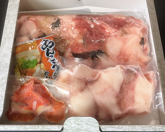 あんこう800g(あん肝30g×1袋、身185g×1袋、アラ585g×1袋)、専用濃縮スープ1袋、レシピ