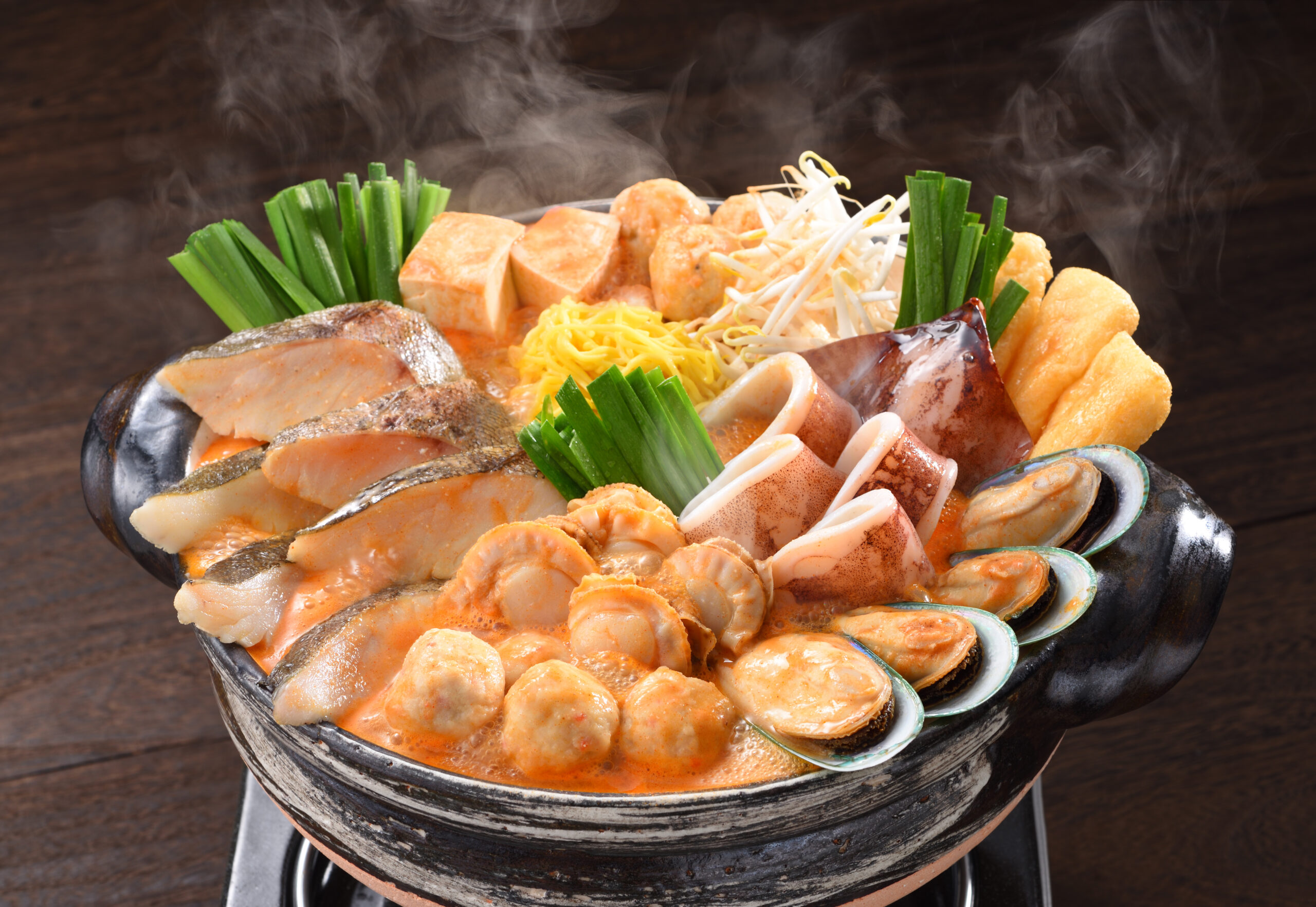 北海道日本海で水揚げされた甘海老から造られた魚醤油を隠し味にした、コクと深みのある塩ベースのたれで召し上がる海鮮鍋。