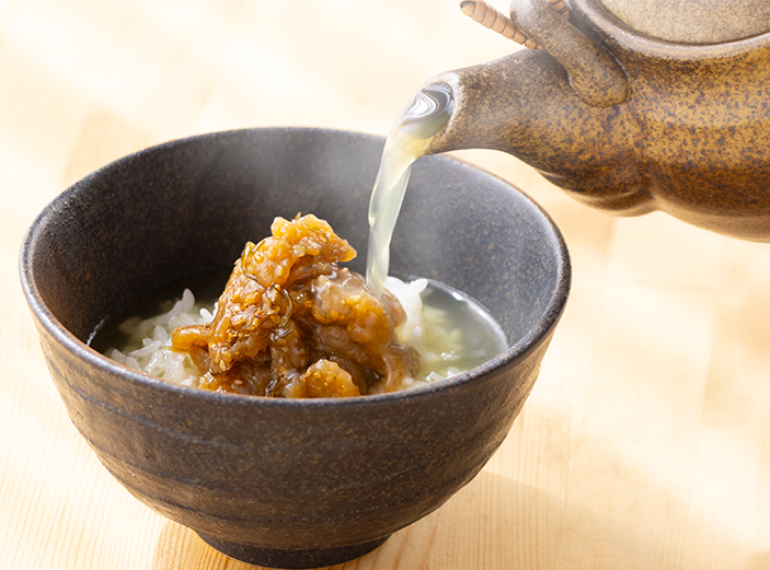 温かいご飯の上にのせても、だしやお茶、お湯をかけてお茶漬けにしても、そのままでもお召し上がりいただけます。他にも生卵の黄身や薬味を加えるなど、いろいろな味わい方を楽しめます。